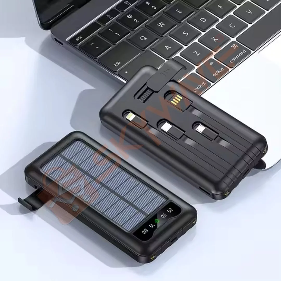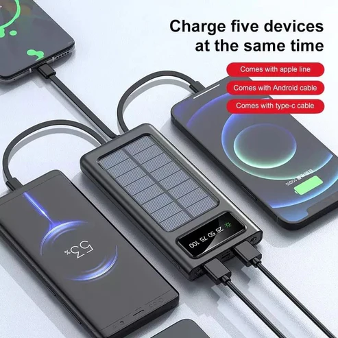 14,000 Mah Fast charging solar power bank with 4 built in cables, LED display,phone holder and a torch (also uses electricity)